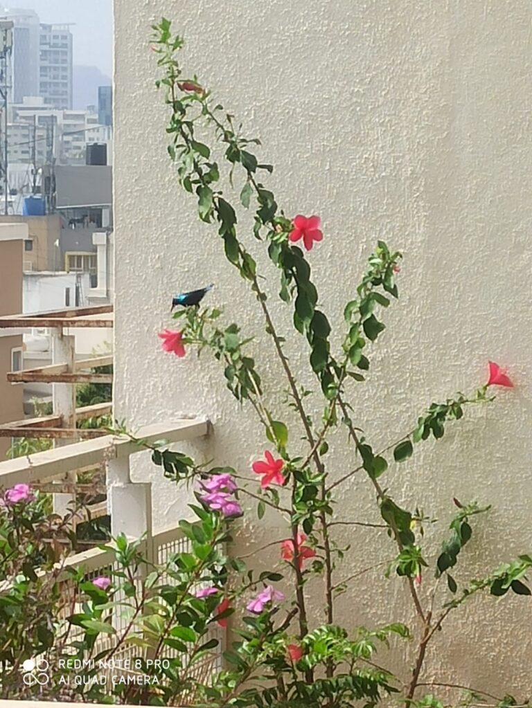 आमच्या सोसायटीचे आवारात बुचाची/ हादगेची खुप झाडां सत. ते झाडाला यंदा खुपच बहर आयलो से. धवे शुभ्र रंगाची, मंद सुवासाची फुलां तेला येसत. झाडाचे शेंडे आमच्या बाल्कनीच्या उंच्याचे जाले सत. तेचेवर खुपशी फुलां फुलली सत. सहज बाहेर जाव्नी में झाडा बघीत उभी ऱ्हेल्या. अनेक निरनिराळे आवाज करणारी सुकणी बघे मिळली. सूर्यपक्षी हे फुलावर्थींन दुसऱे फुलावर सहज उडत सताना बगला. में खूष झाल्यां अणि झाडाकडा एकटक बघीत ऱ्हेल्या. तेंचो आवाज काढेची लकब निराळी सें. ‘चि -चि -चि -चिविक् -चिविक् -चिविक्- चिर्र्- चिक् -चिक् असो गोड गोड आवाज आयके येत सलो. तेंचे जांभळे रंगाला वेगळीच लकाकी सें. तेला लागोनी निबरांत अणीकय चमकसे.
